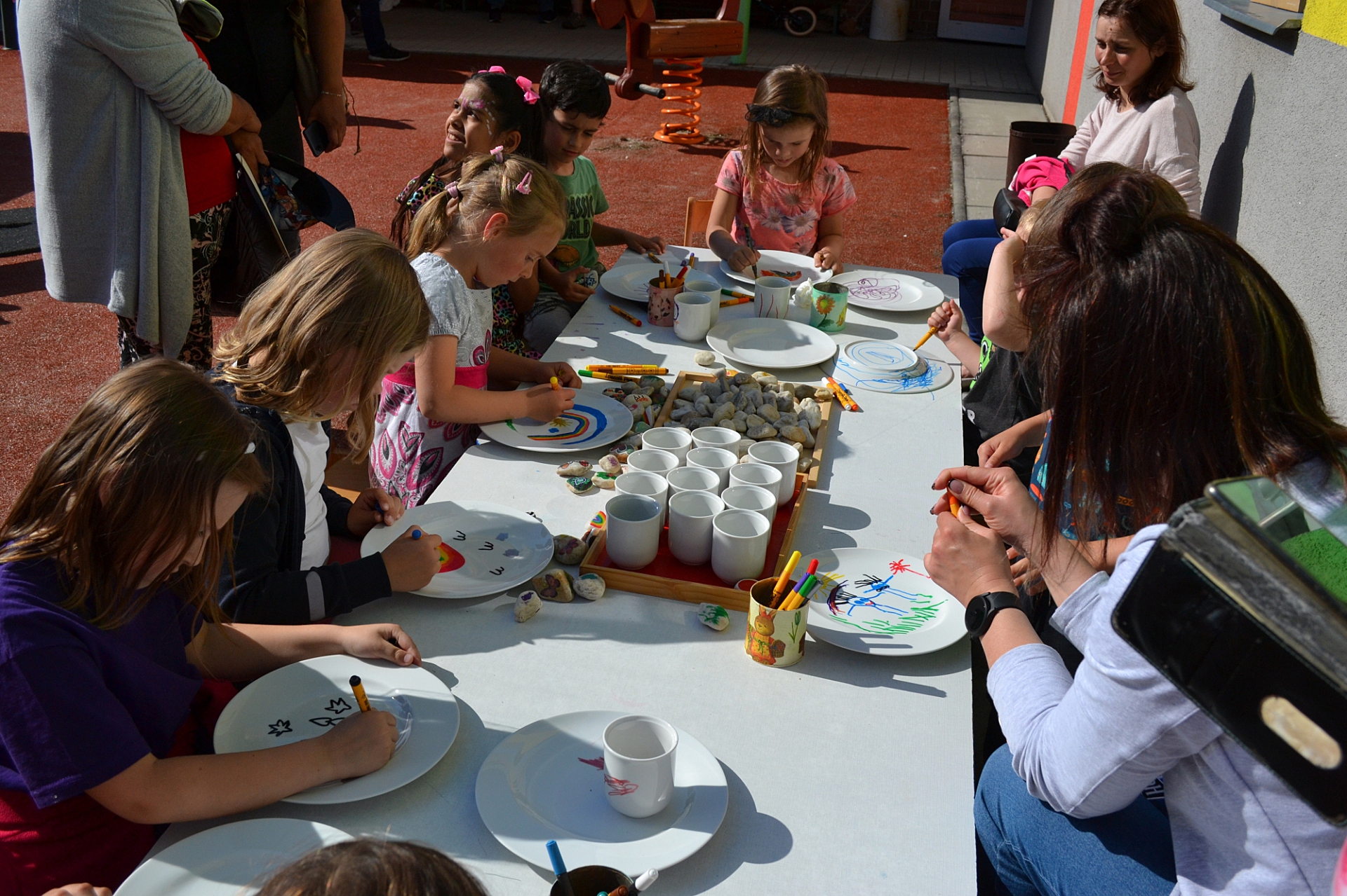 Děti z MŠ Úpice vyzkoušely malování nejen na kameny, ale i sádrové odlitky. Odvážnější si nechaly pomalovat obličej. Procvičily zručnost a při zdobení představivost a paměť.